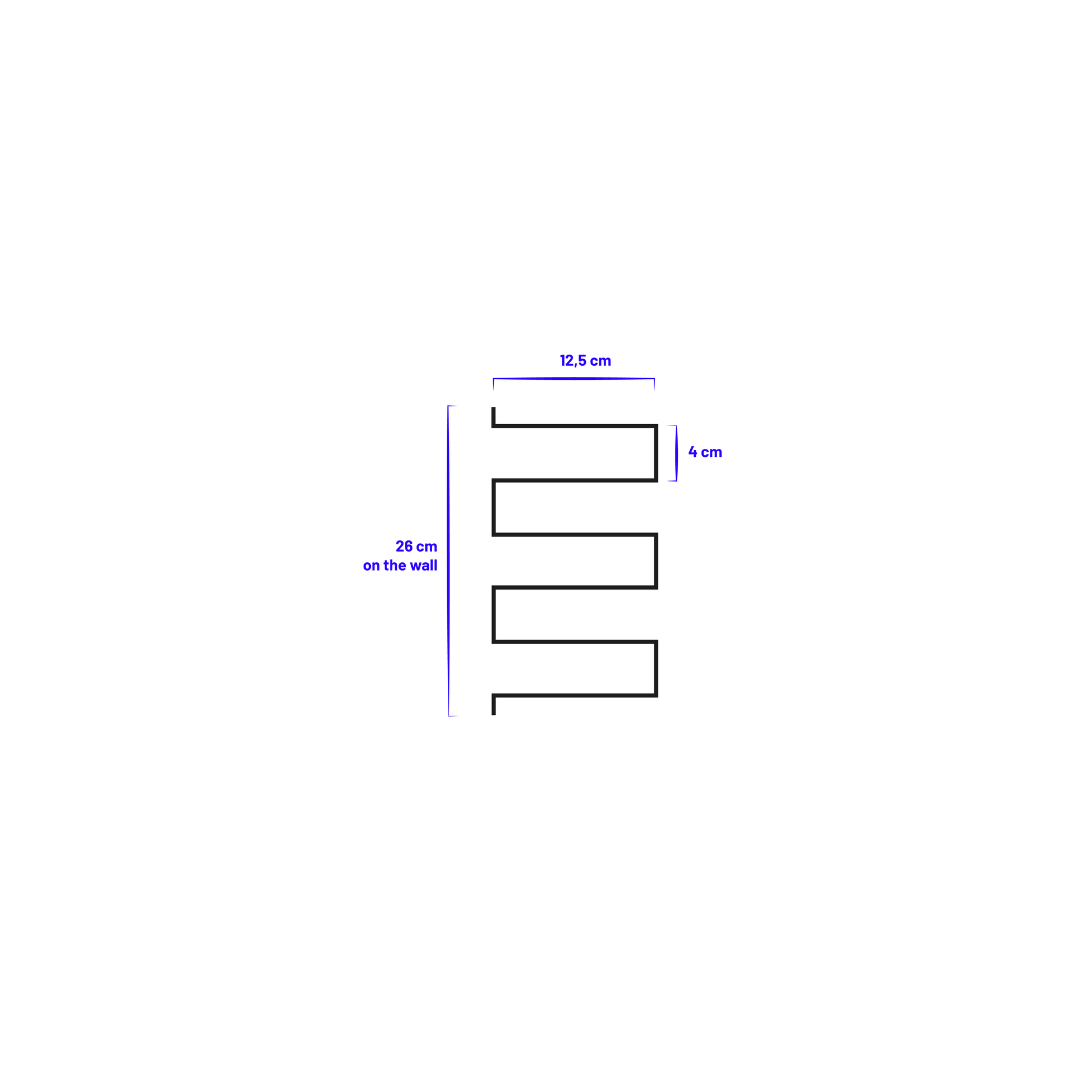 Width 200mm x depth 125mm x height 260mm on the wall and 220mm in space